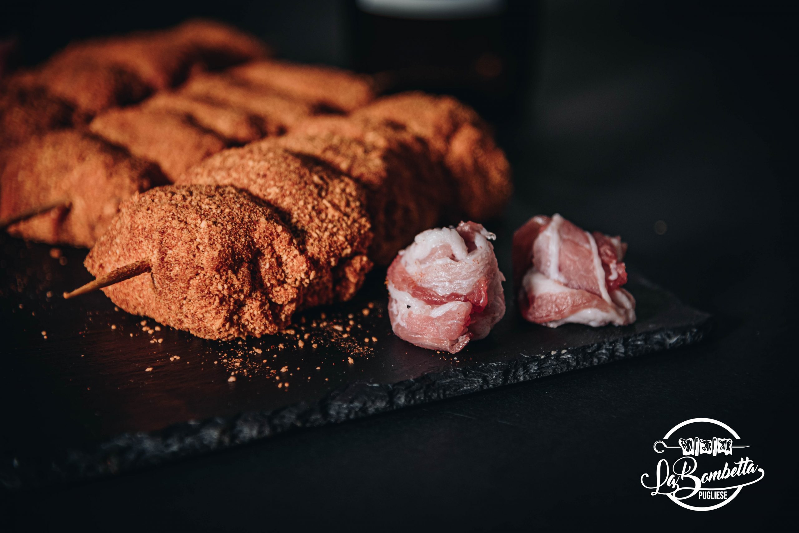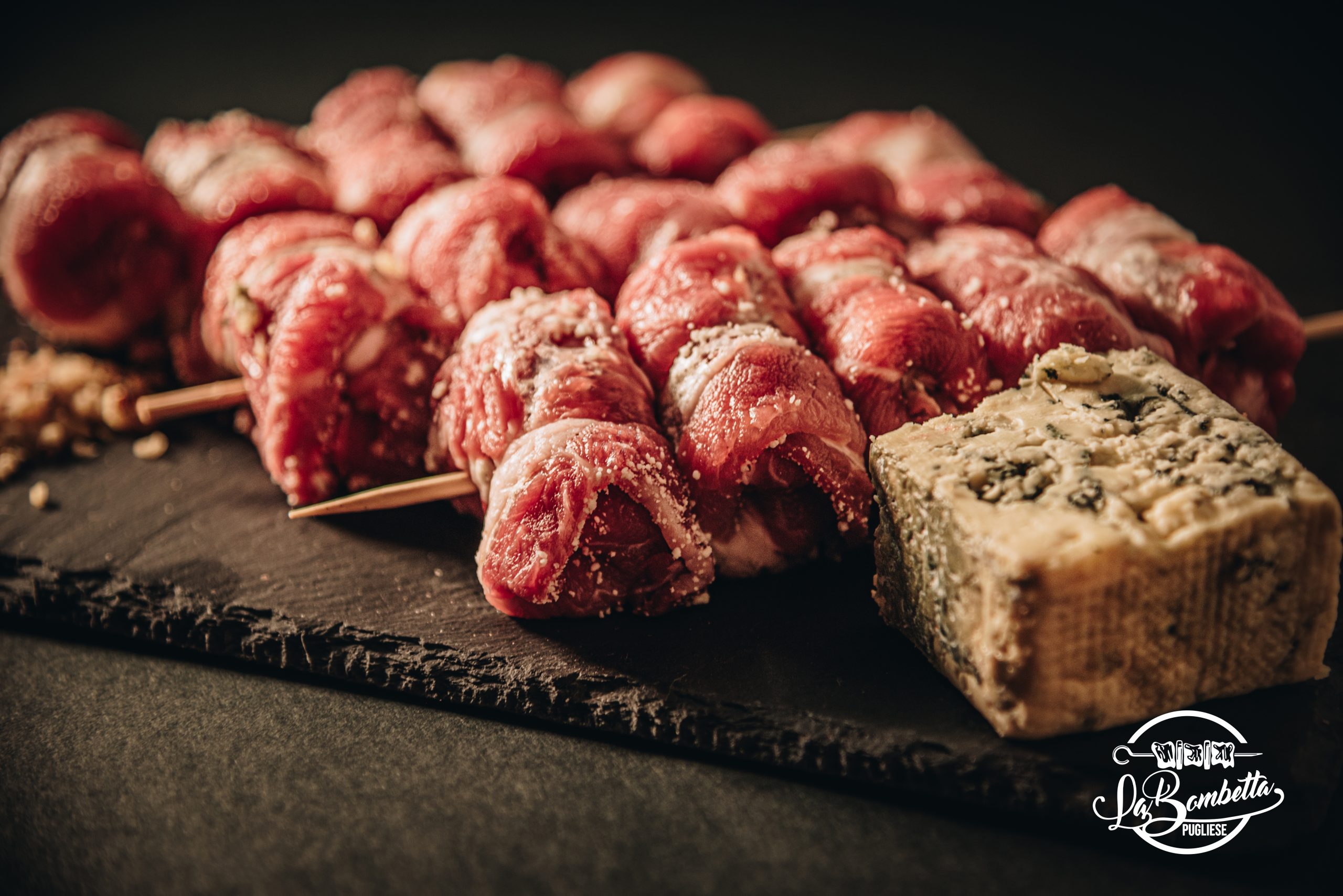 La bombetta pugliese è un involtino di carne di maiale farcito con formaggio e spezie, tipico della Puglia. È una specialità della Valle d’Itria, in particolare di Martina Franca e Cisternino. Le bombette vengono preparate con carne di maiale fresca, tagliata a fettine sottili e farcita con formaggio, sale, pepe e altre spezie. Le fettine vengono poi arrotolate a forma di involtini e cotte alla brace.